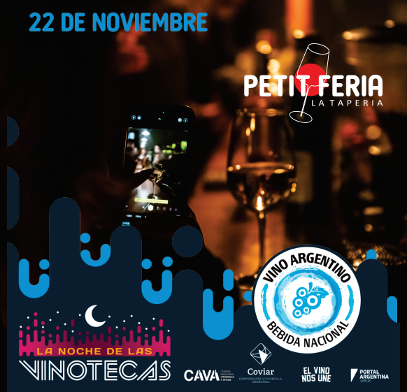Este 22 de Noviembre, estaremos participando por cuarta vez consecutiva de «LA NOCHE DE LAS VINOTECAS». En esta ocasión será modalidad Petit Feria, donde tendremos una selección de bodegas y etiquetas de todos los que nos visitaron este año y además de proyectos nuevos con mucho potencial, acompañamos con una carta seleccionada para esta ocasión.